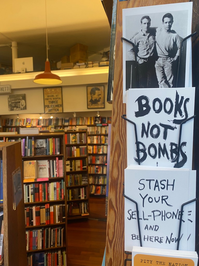 Vi gick också till en bokhandel jag hade på listan över platser jag hemskt gärna ville besöka, nämligen City Lights Books. De är kända för att ha släppt Allan Ginsburgs diktsamling Howl. Generellt var den här bokhandelns tätt kopplad med the Beat Generation, så det finns mycket modern litteraturhistoria i väggarna. De hade ett litet ställ med utvalda böcker som bokhandeln själva rekommenderade, däribland den svenska boken Stöld. Blev starstruck på något vis? Tänk att vara en svensk författare och bli frontad på det viset i den slags bokhandel? Drömmen.