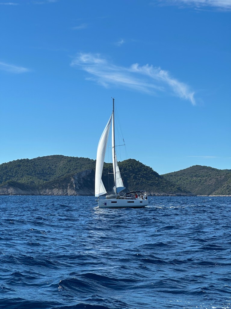 Jag och min vän K åkte till Kroatien, närmare bestämt hamnstaden Trogir för att gå en svensk seglarskola där man bor på båten, lär sig teori och sedan seglar om eftermiddagarna. Vi har båda varit en del på båt men vår förhoppning var att denna vecka skulle ge en slags känsla av att man faktiskt vet varför man gör det man gör, när andra ropar åt en att man ska vinscha och dra i tampar. Visst blev det så men det blev också en vecka som var fylld av så mycket mer än bara seglingen. Vi parades ihop med en mamma och dotter på vår båt, och vi fyra hade så rackarns kul tillsammans med skepparen. Skrattade tills vi fick ont i magen, drog med oss killbåten på långa kvällar i sittbrunnen, gjorde slut på vår skeppare M genom att hålla honom vaken halva nätterna med vindrickande.