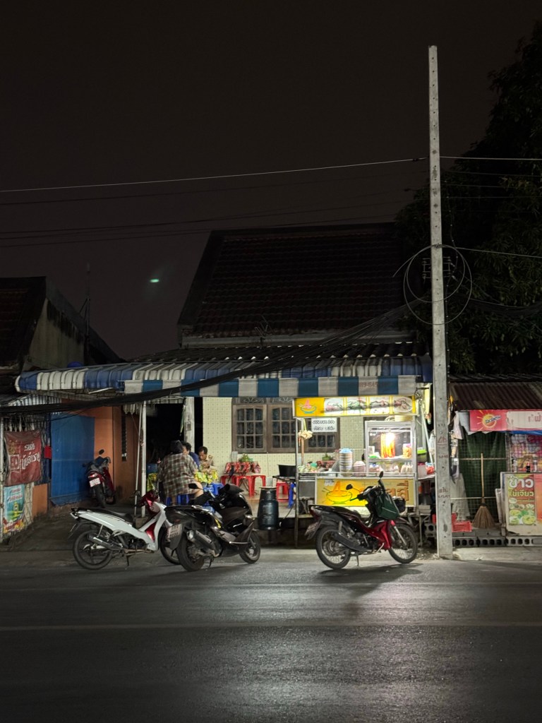 När vi landade var det försent för att åka ut till någon ö så vi hade en natt på ett oroväckande billigt hotell rakt i ett helt turistfritt område i Phuket. Det trodde man knappt fanns kvar, så det var glädjande att vi hamnade i ett område med endast lokalinvånare och så vi två i princip. Vi acklimatiserade oss snabbt och gick till en liten kärra där många verkade köpa soppa ifrån.