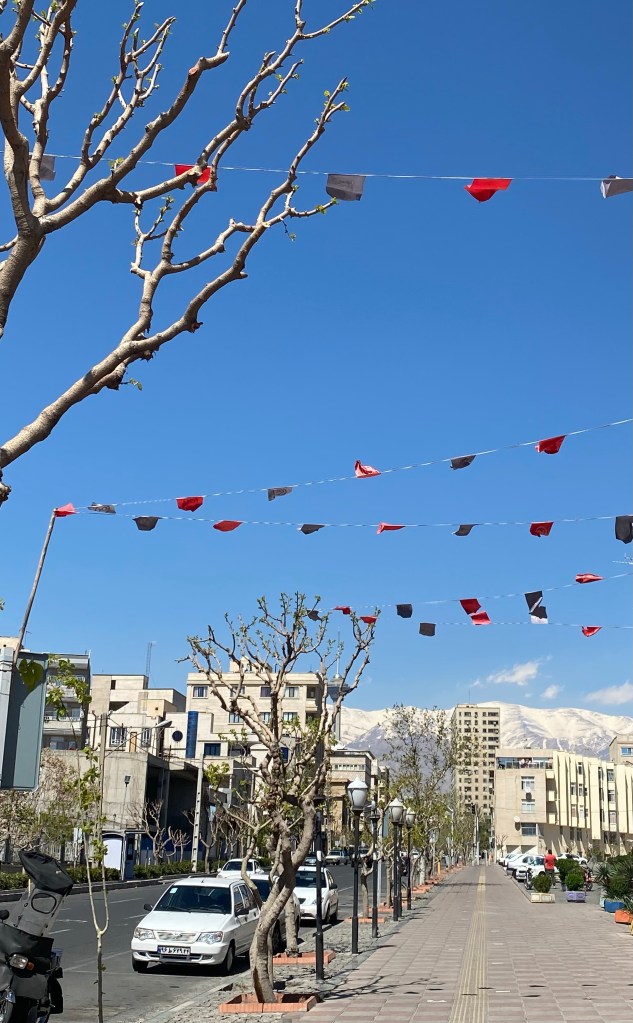 Har fler pågående utkast, vill få skriva om ljuva dagar i ett somrigt Småland med vallmon utslagen, om seglingen och våra bravader. Vill få se tillbaka på midsommarhelgen och blomster. Men en del av mig är inte riktigt här. En del av mig är i Tehran, tänker tillbaka på dess backiga gator och bergets konturer. Tänker på bergsfoten där min släkt bor, på utsikten från lägenheten, på restaurangerna kring Tajrish. Jag minns bokaffären med det mysiga caféet som nu är sönderbombat, på den Blå ankans restauranginredning som är smulad till damm, på trädgårdsmästaren som tar hand om alla blommor i området där jag brukar vara, var är han undrar jag. Hela Tehran ska evakuera men han har två barn och lite pengar, inte har han någon annanstans att ta vägen. Jag tänker på hur all crypto försvunnit ur de ungas sparportmonnäer som inte kunnat samla den egna valutan med den stadigt uppåtgående inflationen. Jag tänker på mig själv, på hur mycket jag saknar min släkt jag inte vågat besöka på tre år sedan UDs inreseavrådan. Jag tänker på våra soliga dagar vid deras sommarhus, när vi latat oss i poolen och ätit aprikoser direkt från trädet som varit solvarma och smält i munnen. Minns den myllriga basaren, frukthandlaren som låter en pressa granatäpplen så en hel flaska fylls. Minns maten, maten, maten med saffransdoft och drösvis med färska kryddor. Längtar till att få äta tillsammans med min släkt. Längtar till deras sångröster, ackompanjemang med traditionella instrument, till min morbrors stämma när han reciterar poesi.