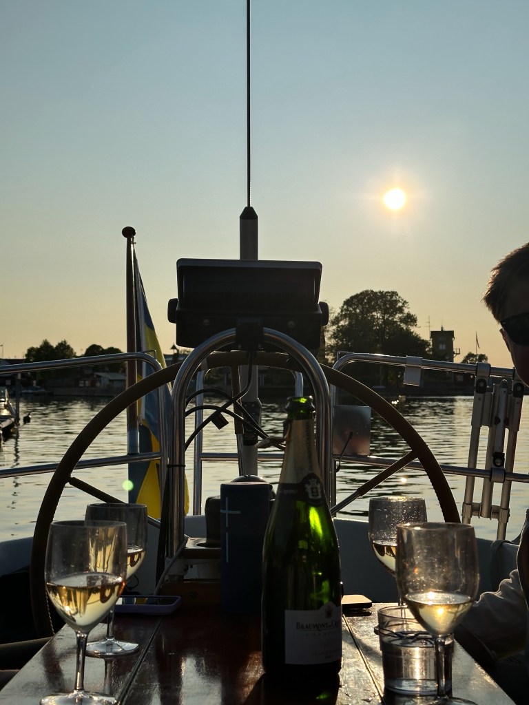 Vi seglade från Bullandö till Sandhamn morgonen därpå, det var helgen innan midsommar och ganska kyligt i luften än så vi var inte alltför många som la till i gästhamnen och tur var väl det med våra något skrala kunskaper om att angöra en brygga värdigt. Vi firade att varesig vi eller omgivande båtar tagit skada, genom att dricka bubbel.