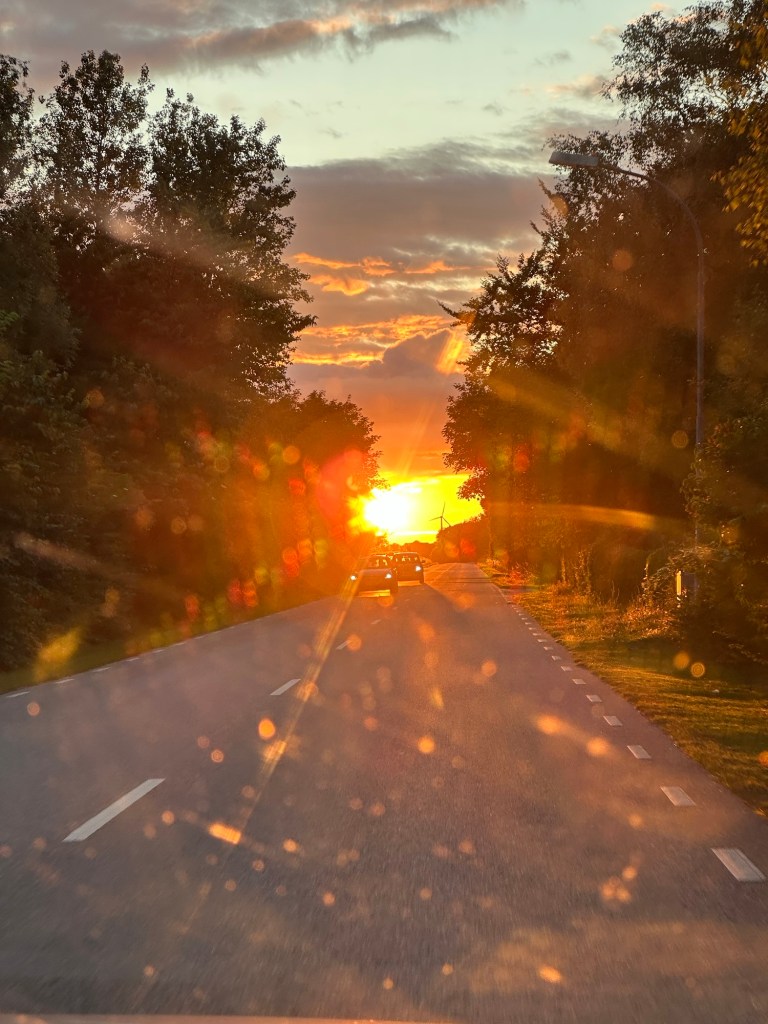 Efter Örum var magarna mätta och kropparna lite kalla, vi hade suttit utomhus under kvällen. Tyvärr på ett sätt, för jag hörde sen att glassen i Örum vunnit pris men den fanns det inget sug för. Bilen styrdes sedan hem till älskade Näset och Ljunghusen. Vägen mellan kallas kustvägen, och den är magisk. Vindlande längs havet och vacker natur, med solnedgången i sikte genom skitiga hyrbilsrutor. Är glad för den här dagen, är glad för Gertie och allt jag fick i min barndom, är glad för Daniel och allt han ger i min nutid.
