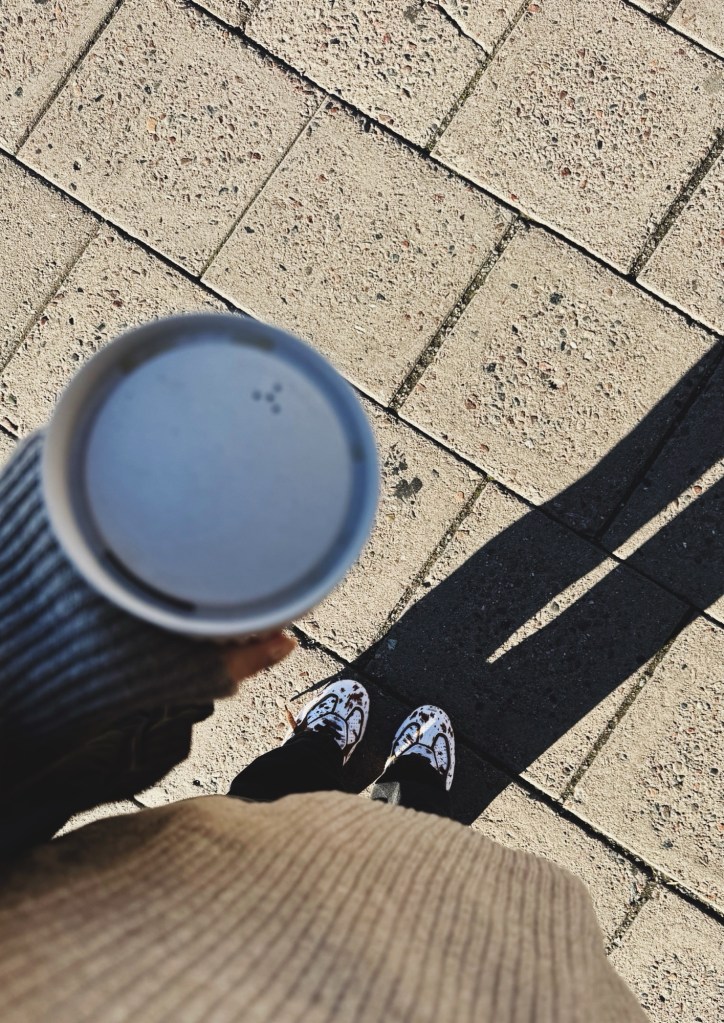 Hade snörat på mig mina nya sneakers. Har inte bestämt om känslan är ”åh coola” eller ”åh medelålders person som tappat sin stil men försöker festa till med roliga tossor”.
