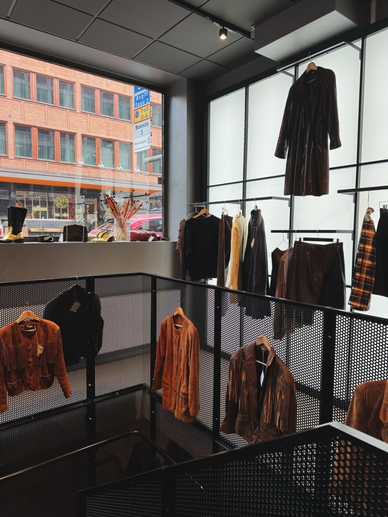 Istället gick jag in på Re:Fashion som ligger på Linnégatan. Deras skyltning ropade höst med alla sina mockaplagg.