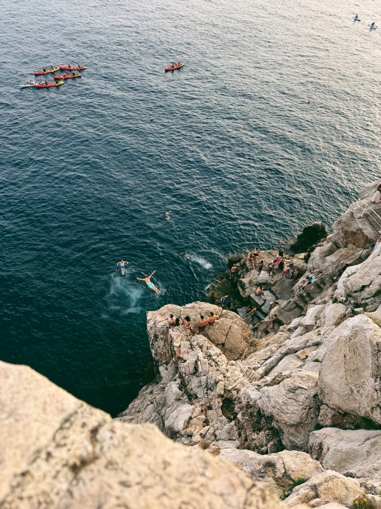 Folk var sjukt modiga och hoppade från höga klippor. Jag hoppade också men från lite lägre avsatser.