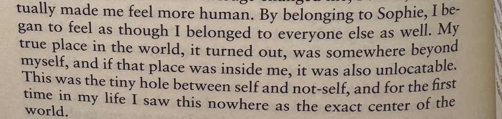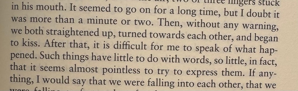 Sanningen ska dock fram – det tog mig evigheter att läsa den här boken. Den hängde med hela sommaren till diverse platser och jag blev aldrig riktigt klar. Länge kände jag att det är så lite kvar, en sittning till och jag är färdig, men det krävdes flera gånger till med boken för att jag skulle få läsa sista sidan. Den känslan bottnar sig ju inte bara i en positiv uppfattning inför en bok, utan jag var redigt trött på den ganska länge. Den var med i Ljunghusen, Kroatien och hemma på balkongen i Stockholm. Det är för många platser. Samtidigt är det något med Austers vackra betraktelser om livet, som när han försöker beskriva hur kemi känns precis före man kysser varandra eller den där fullkomliga känslan av att höra ihop med någon och hur det kan göra att man är öppnare i hjärtat mot andra i ens liv.