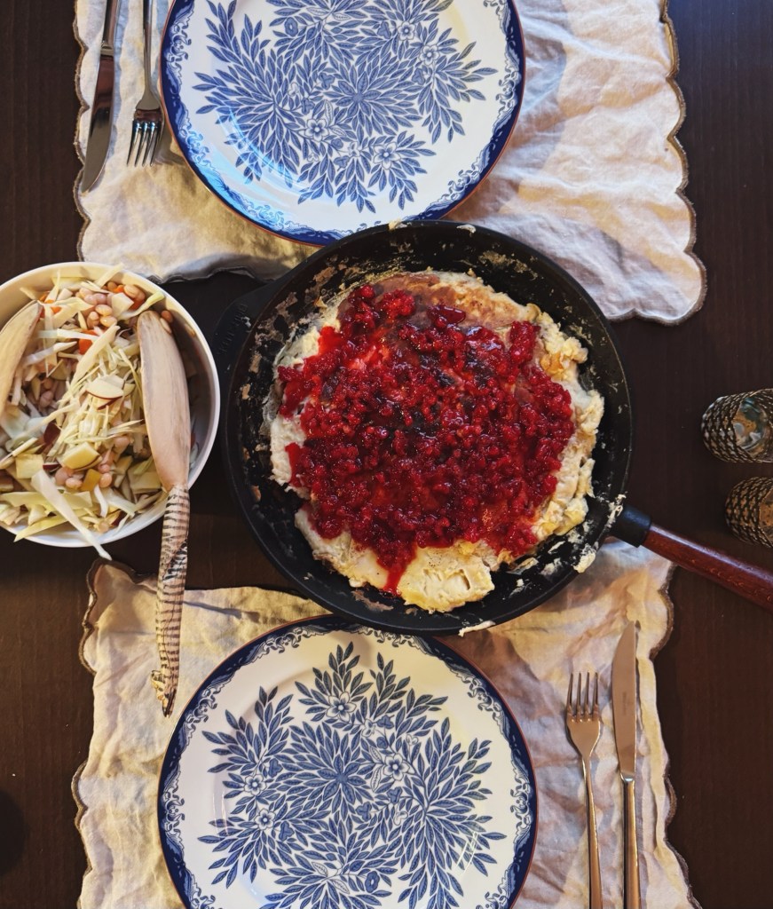 Eftersom jag är hemma mycket senare om vardagarna har matlagningen också fått spegla det. Daniel har lagat pasta och köttfärssås och jag var syndig och åt med ketchup, tryggaste som finns. Gjorde även skånsk äggakaga som vi ofta fick i skolan, och åt med lingon från Hälsingland. Säg något godare! Kanske får månadens rätt dock ändå bli kantarellpasta eftersom det plockats en del.