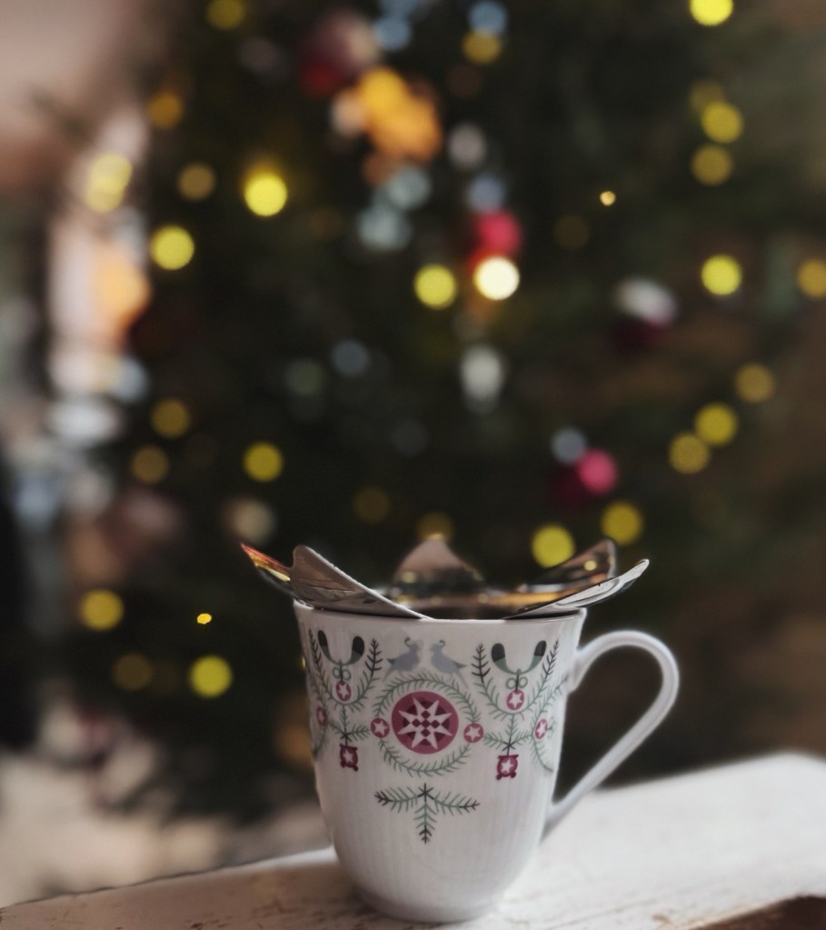 Dagen efter var vi lite trötta igen. Kanske mest jag? Kände mig tacksam över livet osv medan jag drack ur en kopp vi fick av mamma i adventspresent. Tesilen har jag fått av min brors fästmö och själva teet från min vän Cilla, Vinterskrud från Kahls. Ett grönt julte!