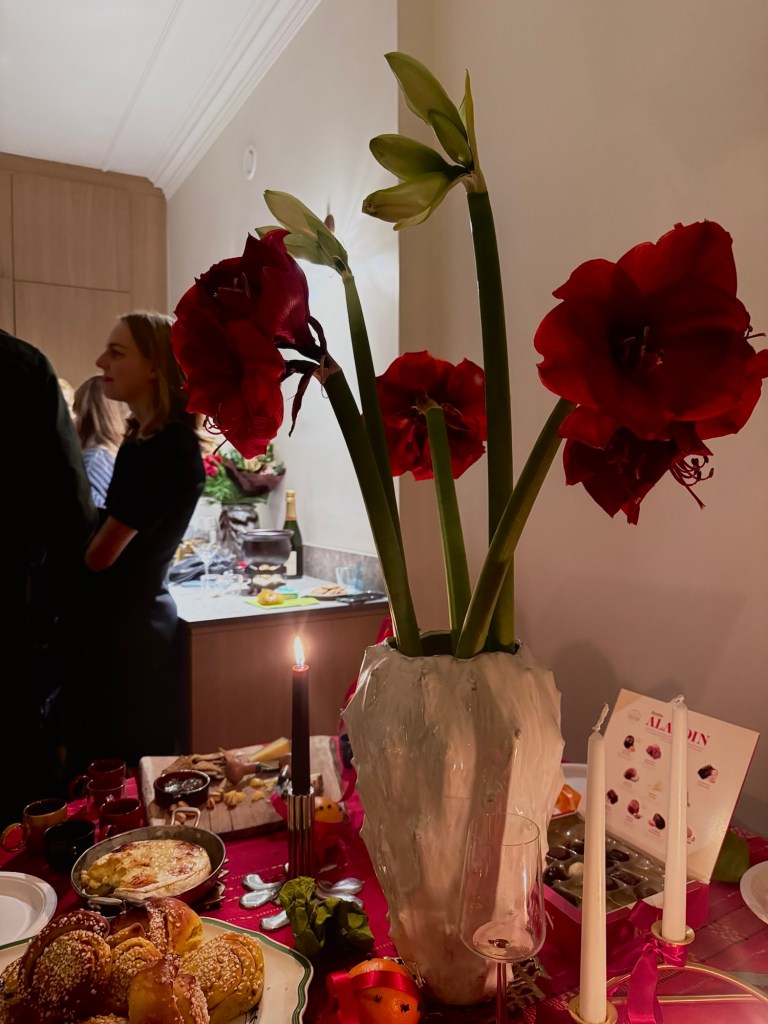 Fredagskvällen ekade tomt i kalendern men jag kom hem tidigt från jobbet och kände att det hade varit fint att göra något litet iallafall för att känna att det är helg, hur trött man än må vara. D var på julhäng med sitt jobb så jag försökte arbeta upp en fredagskänsla på egen hand. Tur då att min vän Antonia som bor ett par hundra meter ifrån mig, frågade om jag ville komma över på ost och vin. Sagt och gjort! Spontant, hjärtligt, nära och hemma vid klockan åtta. Kunde inte bett om ett bättre upplägg!