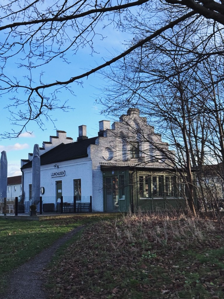 Vi åkte dit i början av januari. Vinden var isande kall och vittnade om kommande snöfall. Den här lilla gulliga gamla tågstationen ligger på promenadavstånd från oss, och vi gick förbi för lunch efter vi installerat oss genom att sätta på värmen i huset och lämnat väskor. Det är inrett så fint där, fransk bistro-känsla. De förra ägarna sålde häromåret till kocken, så det mesta känns igen, tryggt nog för en person som mig som gärna vill känna igen mina gamla trakter.